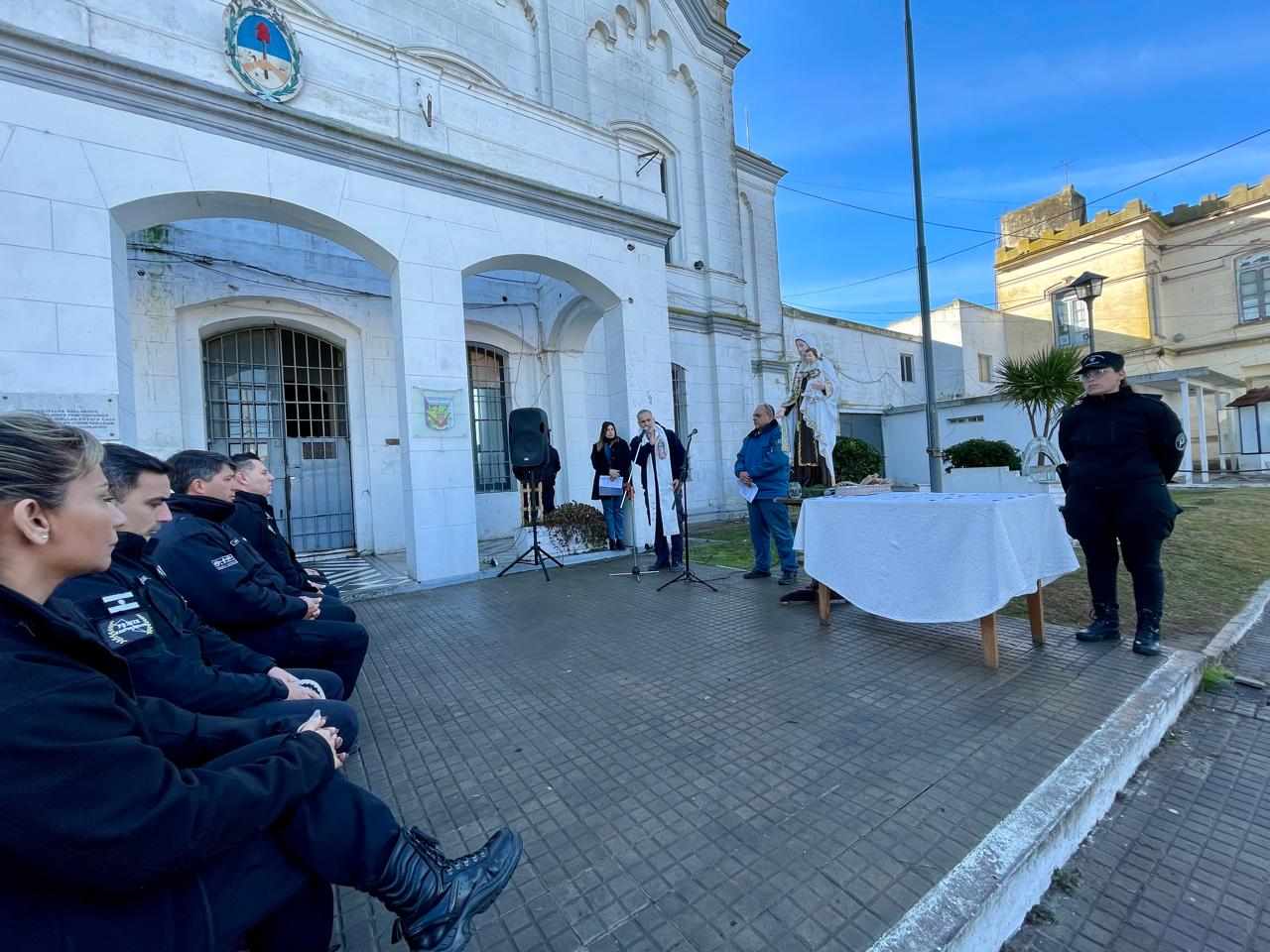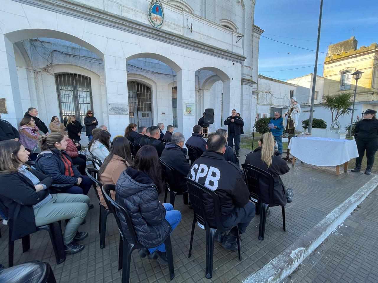 A continuación, el Obispo de la Diócesis de Chascomús, Monseñor Juan Ignacio Liébana, junto a Nuestra Señora del Carmen, Patrona de todos los Establecimientos Penitenciarios, realizó una Oración en acción de gracia y bendijo las Medallas y Diplomas pertenecientes al personal que cumplió 25 y 30 años de antigüedad.