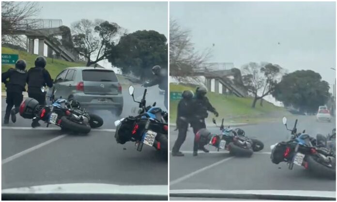 Un hombre que conducía un auto robado embistió a cinco policías motorizados que intentaron detenerlo en Avenida General Paz y Rodolfo Scapino, en Villa Lugano, en medio de un tiroteo.