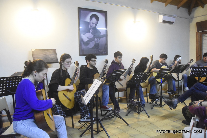 La estudiante de guitarra, Martina Casazza, interpretó una obra de Heitor Villa-Lobos y luego se sumó al conjunto de guitarras dirigido por el Prof. Villalba, que deleitaron al público con “Invierno porteño” de Astor Piazzola, “Pecado de Juventud” de Raúl Carnota y “Tonada”, de Abel Fleury. A continuación la docente Silvia Castro presentó su libro dedicado a la vida y obra de Abel Fleury, invitando a Gabriela Siccardi, quien agradeció el tributo al artista dolorense.