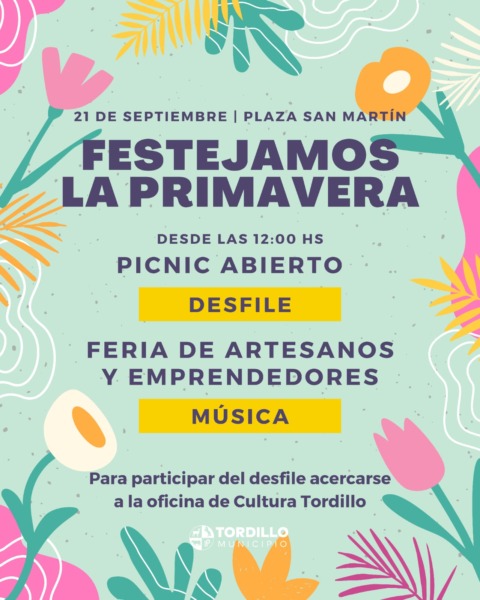 Además contaremos con la presencia de la feria de artesanos y emprendedores tordillenses y música en vivo.