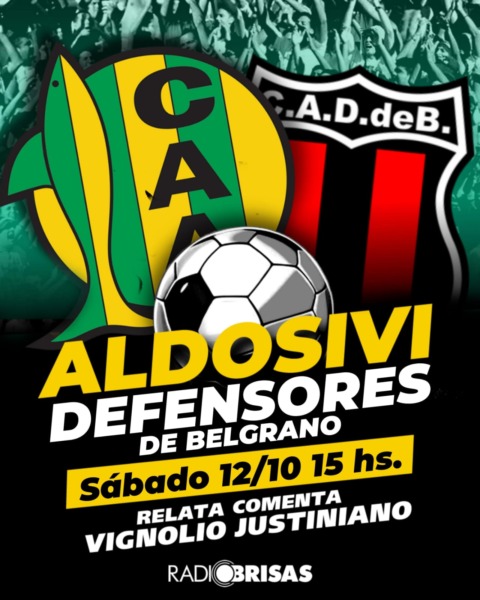 Aldosivi sigue prendido en la pelea por ascender a la Liga Profesional de Fútbol. El sábado 12 de octubre en el Estadio Jose Maria Minella recibe a Defensores de Belgrano. Desde las 15:00 hs. por Radio Brisas relata Eduardo Vignolio, comenta Justiniano.