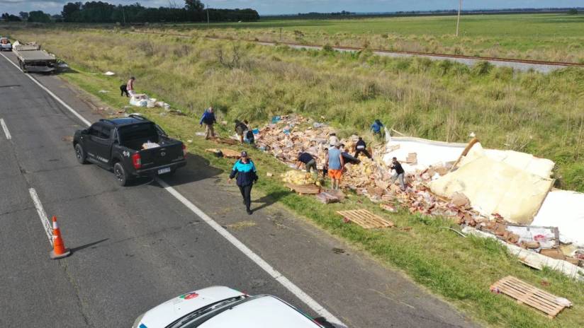 El despiste del vehículo marca Volvo se produjo en circunstancias que son materia de investigación, y el acoplado quedó destruido, aunque su conductor salió ileso. En ese momento, rápidamente decenas de vehículos particulares se detuvieron en el lugar y sus ocupantes descendieron para llevarse la mercadería.