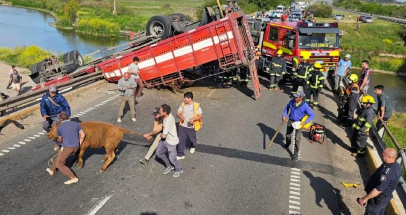 Un camión jaula volcó en la ruta 9, San Pedro, provocando un escándalo cuando vecinos comenzaron a carnear las vacas en plena vía pública. Las impactantes imágenes muestran a animales escapando y un rescate del conductor por parte de Bomberos.