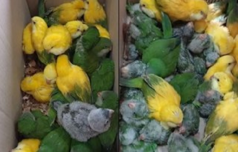 94 cotorras sin comida ni agua eran transportadas en una caja de cartón, escondidas en una camioneta. Por ello, el conductor del vehículo fue apercibido por infringir la Ley 22.421 de Conservación de Fauna.
