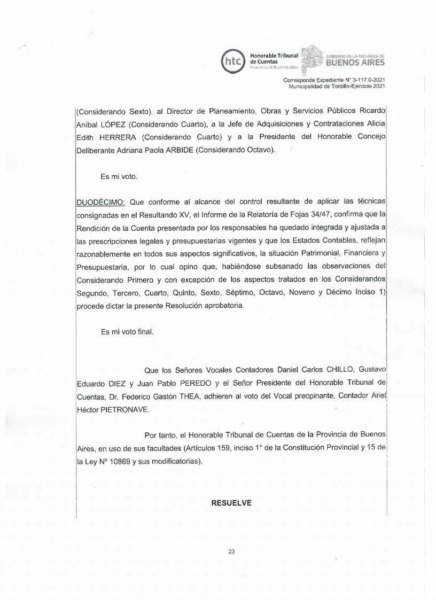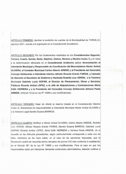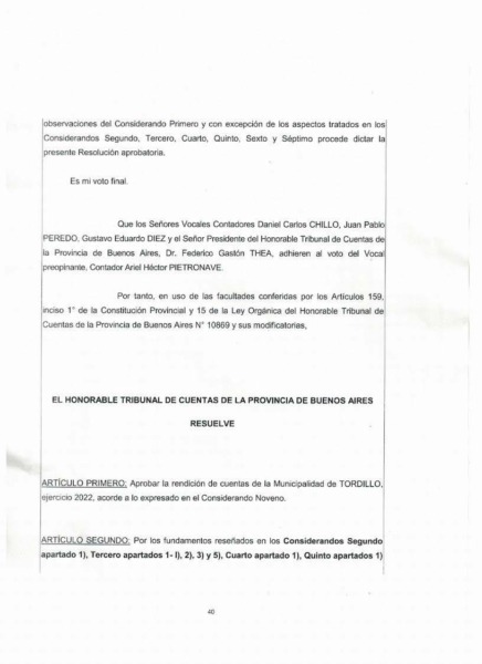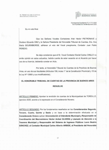 Como ejemplo de todo esto, se adjuntan aquí las tres actas de aprobación del Tribunal de Cuentas a la rendición anual de Tordillo para los ejercicios fiscales de 2020, 2021 y 2022, sobre los que la oposición en nuestro distrito ha proyectado injustificadamente un manto de duda.
