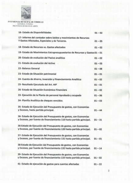 En términos de transparencia, es de público conocimiento el que los municipios están obligados por ley a elevar —hasta el 31 de marzo del año siguiente— su rendición general de cuentas del ejercicio fiscal vencido. Nuestra gestión lo hace todos los años en tiempo y forma enviando a La Plata todas las planillas, estados, informes, asientos, etc. tanto al Tribunal de Cuentas de la provincia como al Honorable Concejo Deliberante de nuestro distrito.