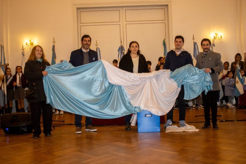 Uno de los momentos más destacados fue la presentación de una bandera gigante, confeccionada por el curso Modelista Patronista, Instructor Ignacio Tarquini y donada por alumnos y docentes del Centro de Formación Profesional N° 401. Esta bandera será izada en el Paseo de la Guitarra.