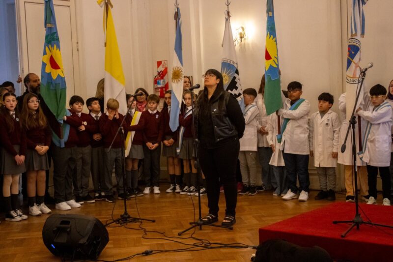 El acto, lleno de sentido patriótico, incluyó el izamiento de la bandera a cargo de referentes del centro de estudiantes.