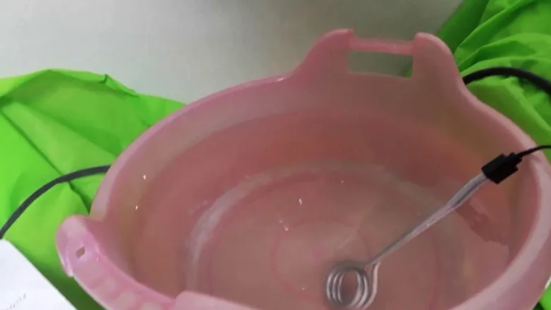 El muchacho había puesto una resistencia eléctrica en un fuentón.