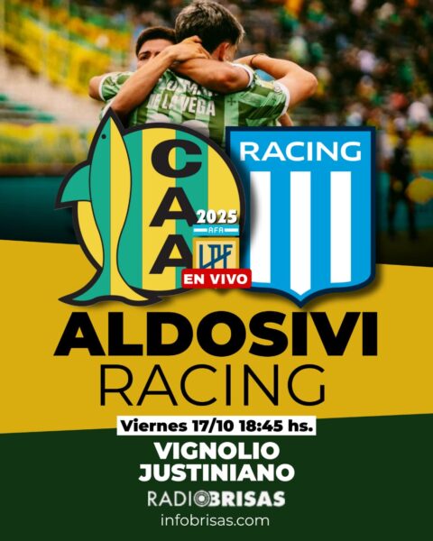 Aldosivi visita a Racing por una nueva fecha de la Liga Profesional de Fútbol el viernes 17 de octubre. Desde las 18:45 horas por Radio Brisas relata Eduardo Vignolio, comenta Justiniano.