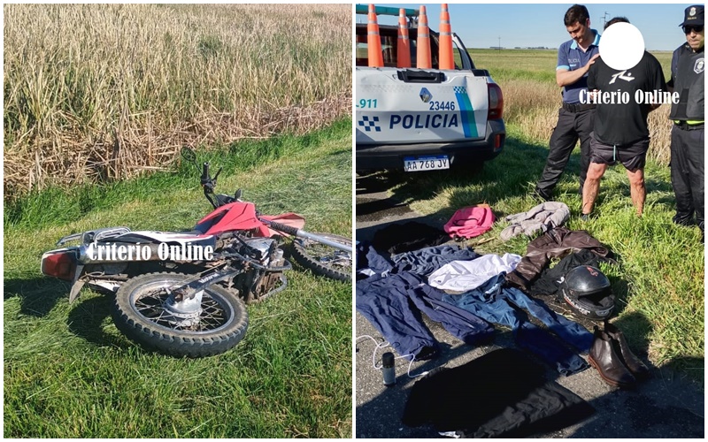 Allí, el individuo descartó la moto e intentó escapar a pie por un campo, pero finalmente fue interceptado y aprehendido.