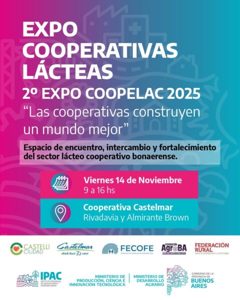 Se realizará la 2ª Expo Coopelac 2025 “las cooperativas construyen un mundo mejor” en Castelli. Un espacio de encuentro, intercambio y fortalecimiento del sector lácteo cooperativo bonaerense.