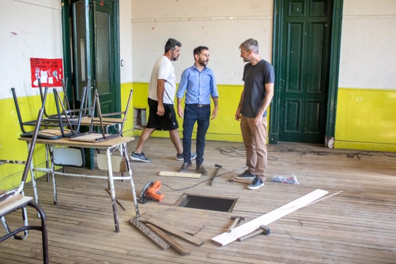 “Llevamos adelante tareas de renovación de pisos que, por su antigüedad presentaban un riesgo para alumnos y docentes en las aulas. Una educación de calidad también se construye con espacios seguros y dignos”, dijo el Director de Educación, Ramiro Blasi, que junto al Intendente Interino Guillermo Ibarra, recorrieron las instalaciones para ver el avance de la obra.