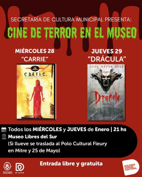 El ciclo cierra con “Carrie” y “Drácula”, dos clásicos imperdibles. La entrada es libre y gratuita. Habrá foodtruck.