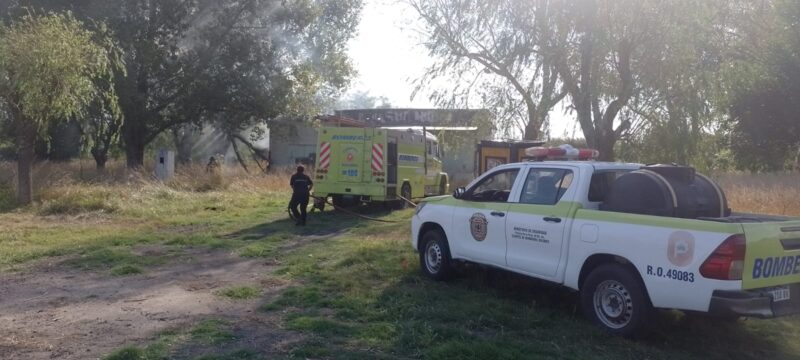 En la tarde de este lunes se registró un incendio de pastos que afectó una gomería abandonada ubicada sobre la Ruta 2, en el tramo previo al ascenso al distribuidor de la Ruta 63.