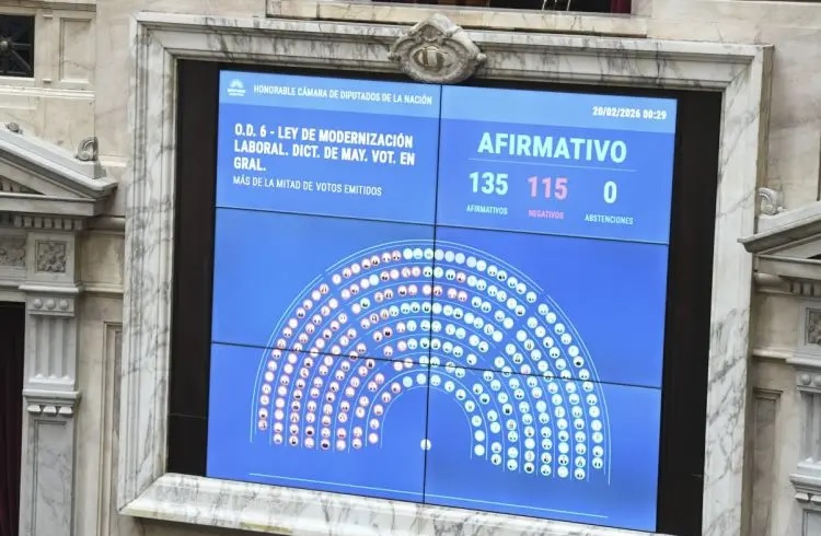 La Cámara de Diputados aprobó en general el proyecto de Modernización Laboral por 135 votos a favor, 115 en contra y cero abstenciones, luego de una jornada cargada de momentos de tensión tanto afuera del Congreso como adentro del recinto. A las 0.31 de este viernes se inició el tratamiento en particular de los 26 títulos que posee la iniciativa.