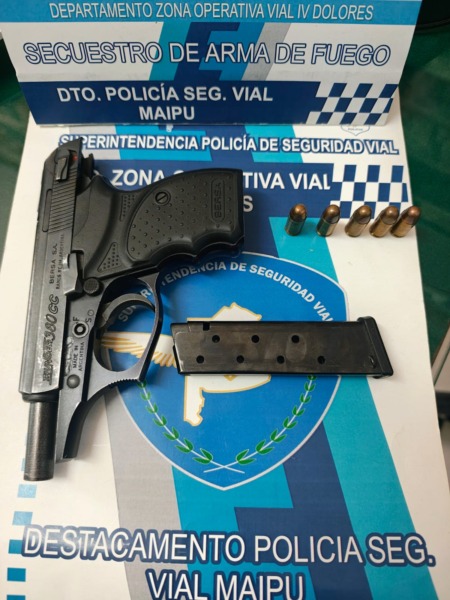 Al realizar la inspección del rodado, los efectivos hallaron un arma de fuego con numeración suprimida, semiautomática calibre .380 oculta debajo de la alfombra del asiento delantero, con cargador colocado y municiones en su interior. Según se informó, el conductor no contaba con la documentación legal necesaria para la tenencia o portación del arma.