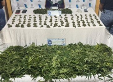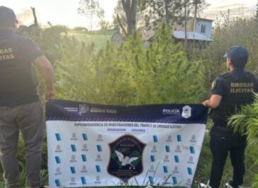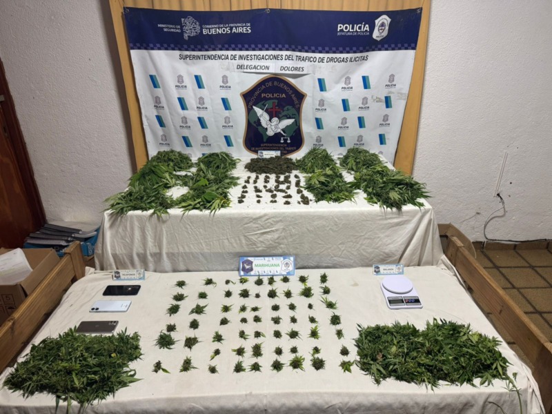 Con las pruebas, Juzgado de Garantías Nro. 4 del Departamento Judicial Dolores a cargo del Dr. MANCINELLI DAVID LEOPOLDO, otorgo respectivas Órdenes de Allanamiento para los domicilios de calle 46 de Las Toninas, se dio cumplimentada en forma conjunta con personal de la Delegación DROGAS ILÍCITAS DOLORES, Departamental La Costa y personal de la Secretaría de Seguridad del Municipio de La Costa lográndose el secuestro de gran cantidad de cogollos de marihuana ya fraccionados para la venta, cogollos en etapa de secado y diversas plantas de marihuana con importante cantidad de cogollos ya florados, haciendo un total de más de 50 kilogramos de marihuana que fue sacado de circulación y ya no podrá ser comercializado, en un valor estimado que supera los 50 millones de pesos, así también se secuestraron balanzas, dinero en efectivo y teléfonos celulares que serán analizados en busca de más elementos probatorios.
