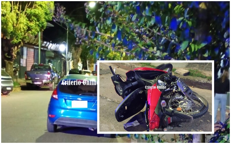 En la noche de este domingo se registró un accidente de tránsito en calle Buenos Aires al 790, que involucró a una moto y un automóvil.