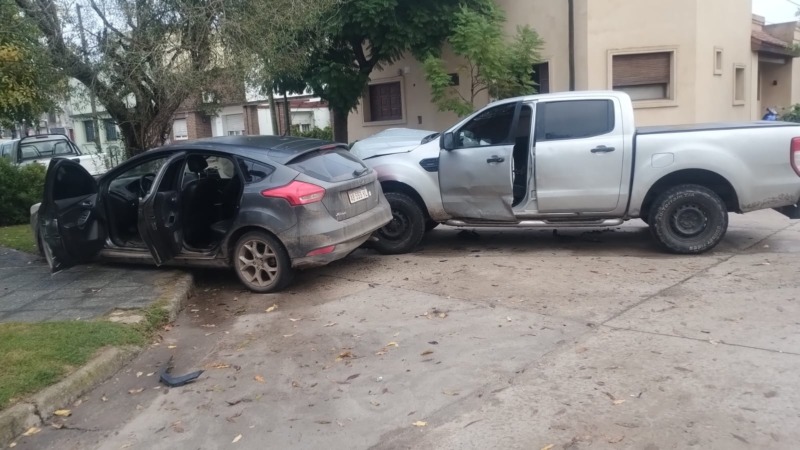 Por causas que se intentan determinar, ambos vehículos colisionaron con tal magnitud que terminaron su trayectoria sobre la vereda. El impacto resultó en daños materiales de consideración para ambos rodados. Como consecuencia del choque, los tres involucrados debieron ser asistidos y trasladados al hospital local.